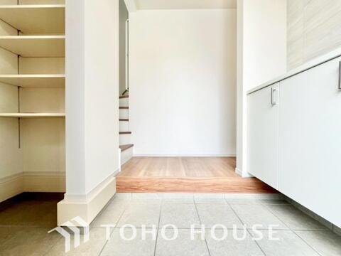 土足のまま入れるの玄関収納。ゴルフバックや部活&スポーツ用品、日常使いの傘なども収納できて便利です。