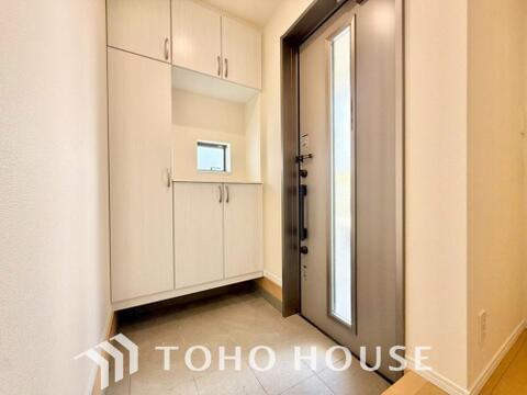 誰が来てもわかる様にモニター付きインターホンを設置。家事導線を考慮した個所に設置し、防犯性と利便性に優れ快適と安らぎを合わせた優しい設計。