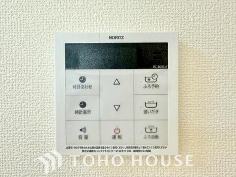 お風呂場と台所に操作リモコンがあり、キッチン近くにある給湯リモコンは、お料理の最中でもリビングで寛いでいるなかでもボタン一つで簡単に沸かせて便利ですね。