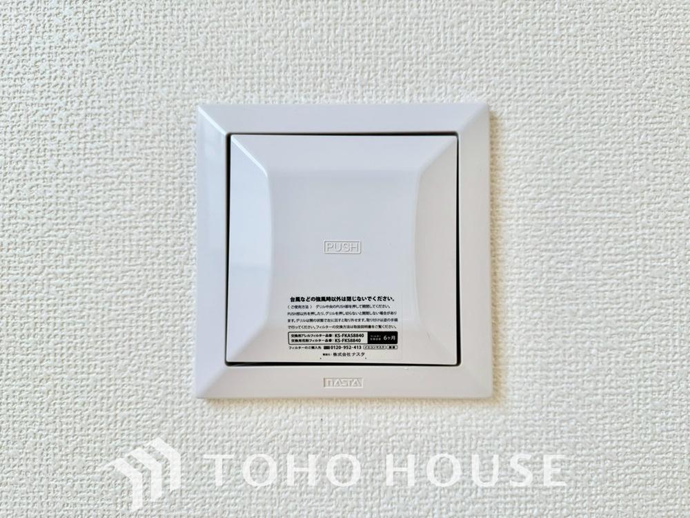 「24時間換気システム」従来の自然換気とは異なり、強制的に室内の空気の入れ替えを自動的に行う事を可能とした「換気設備」です。シックハウス症候群対策としても重要な設備です。