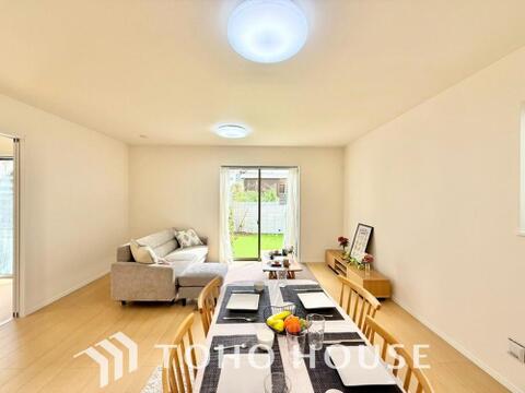 「楽しい我が家が一番」明るく開放的な空間が広がるリビングダイニング。室内には豊かな陽光が注ぎ込み、爽やかな住空間を演出。ホームパーティーでもゲストと一緒に料理を楽しみながら楽しい時間を過ごせそう。