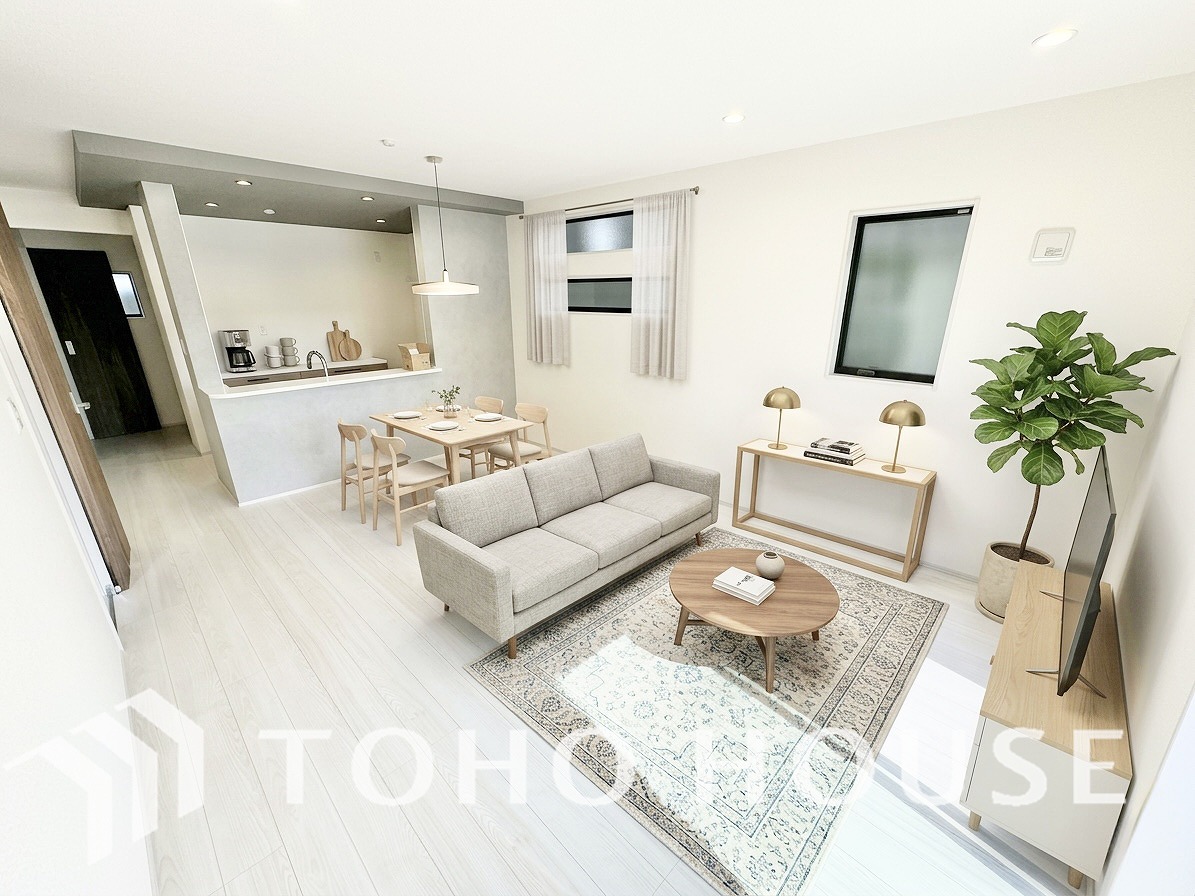 広いLDKでは家族が集まり一緒の時間を過ごせる工夫がされております。