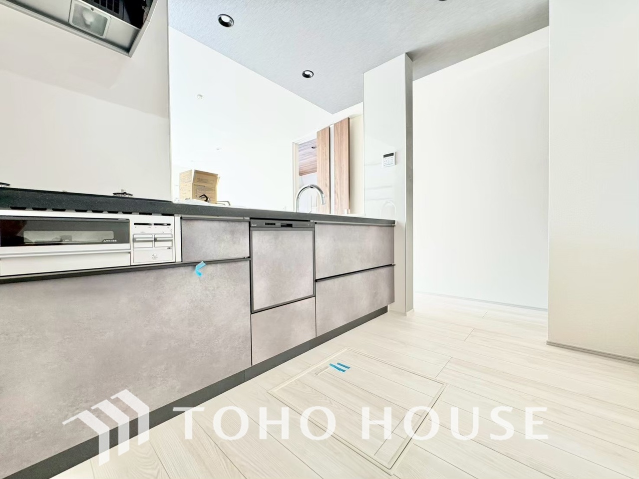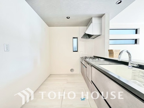 ビルトイン食器洗浄乾燥機付きのシステムキッチン。毎日の家事負担を軽減する嬉しい設備です。