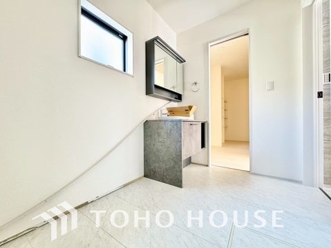 お家の中でも特にプライベートスペースとなる洗面所は、洗濯場所と浴室を同じ空間でまとめております。