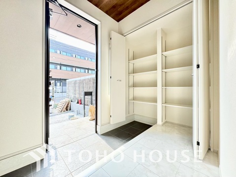 人を迎え入れる最初の場所だからこそ、清潔感がある空間にして頂ける様シューズボックスを設置しました。