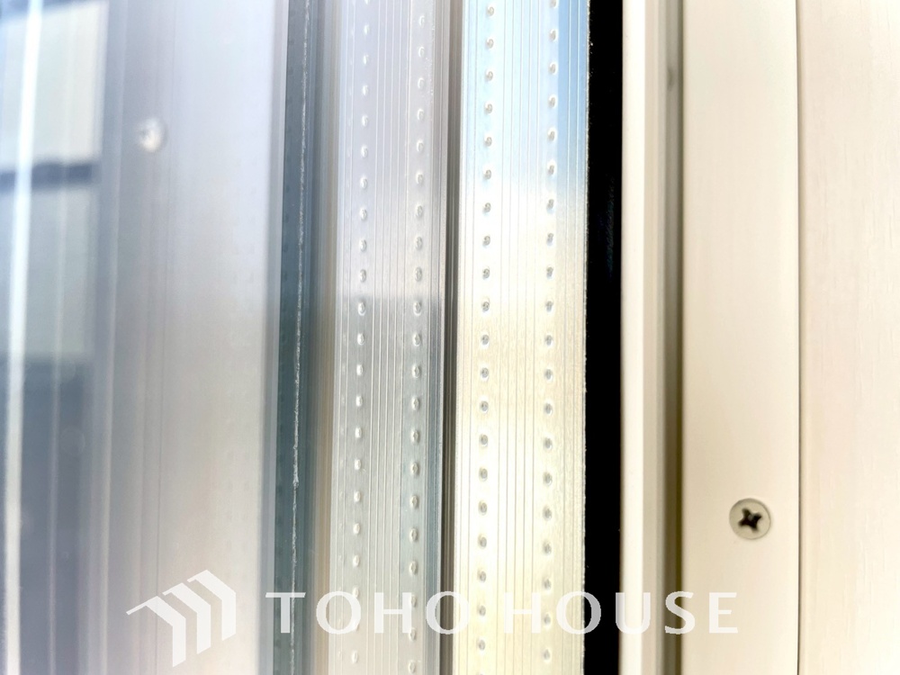 二層のガラスの間に空気層や特殊ガス層を作ることで断熱性能や結露防止効果を高めたサッシを装備してます。