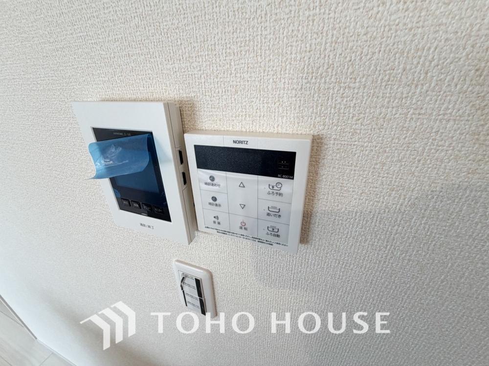 お風呂場と台所に操作リモコンがあり、キッチン近くにある給湯リモコンは、お料理の最中でもリビングで寛いでいるなかでもボタン一つで簡単に沸かせて便利ですね。