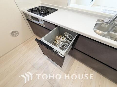 「ビルトインタイプ食器洗乾燥機」通常の手洗いでは使用出来ないほど高温のお湯や高圧水流を使うことにより汚れを効果的に落とすことができる。
