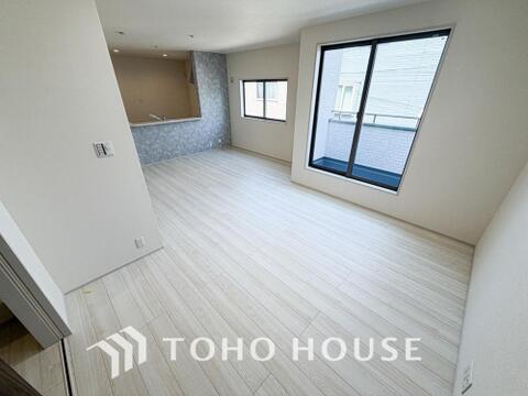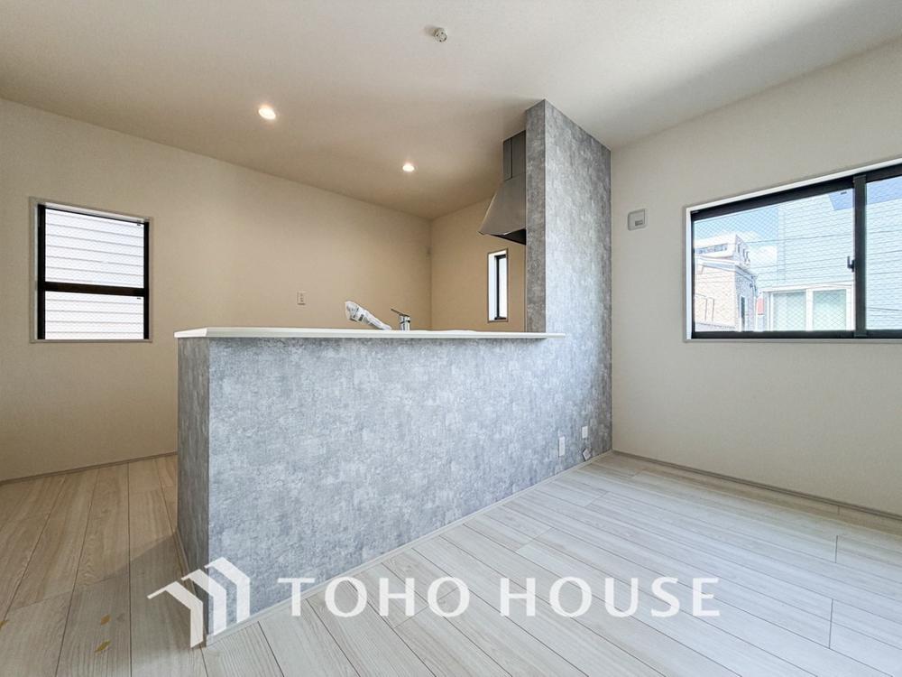 「楽しい我が家が一番」明るく開放的な空間が広がるリビングダイニング。室内には豊かな陽光が注ぎ込み、爽やかな住空間を演出。ホームパーティーでもゲストと一緒に料理を楽しみながら楽しい時間を過ごせそう。