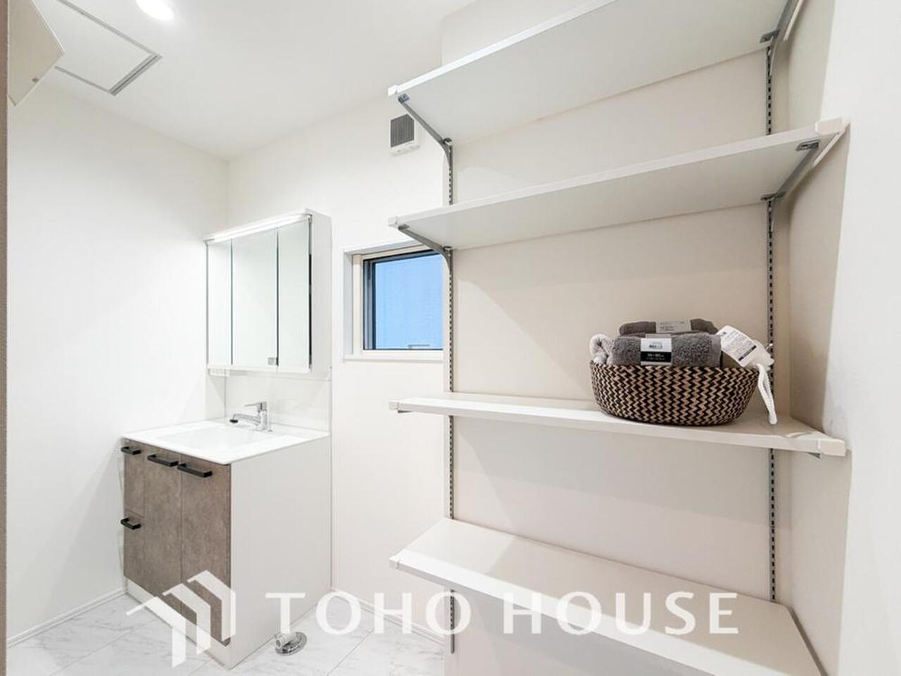 お家の中でも特にプライベートスペースとなる洗面所は、洗濯場所と浴室を同じ空間でまとめております。