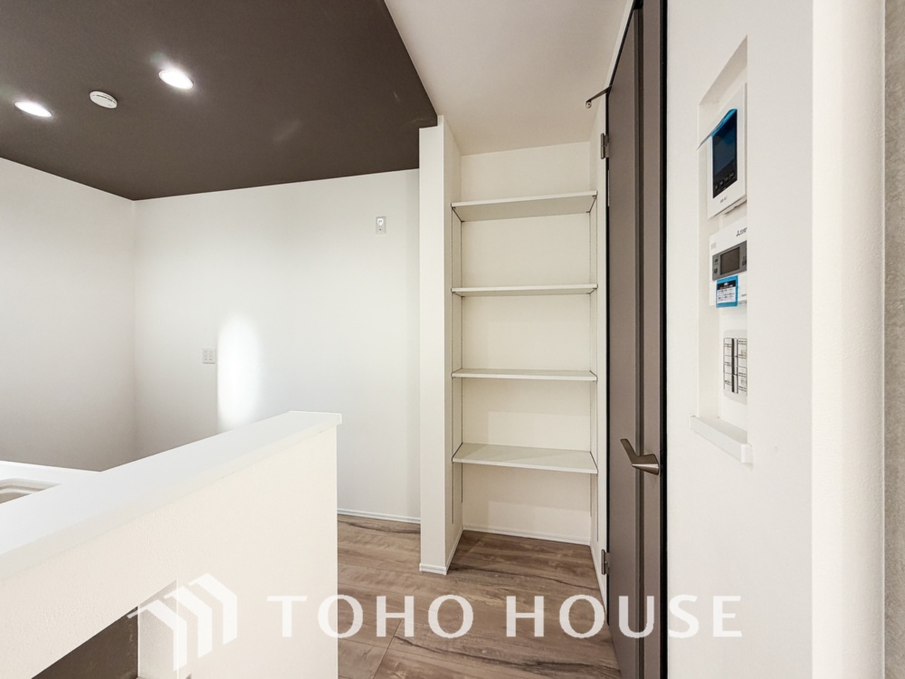 忙しい共働き世帯など、食品の買い置きや日用品のストックに大変便利なパントリー収納が備わってます。
