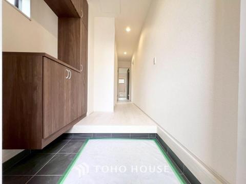 玄関そばの廊下収納。日用品のストックや防災グッズを置いたりと、何かと便利に使えます。