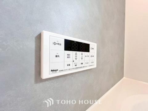 お風呂場と台所に操作リモコンがあり、キッチン近くにある給湯リモコンは、お料理の最中でもリビングで寛いでいるなかでもボタン一つで簡単に沸かせて便利ですね。