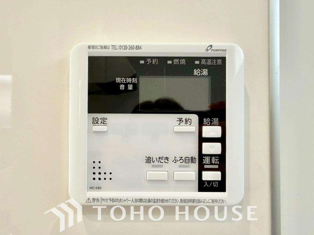 お風呂場と台所に操作リモコンがあり、キッチン近くにある給湯リモコンは、お料理の最中でもリビングで寛いでいるなかでもボタン一つで簡単に沸かせて便利ですね。