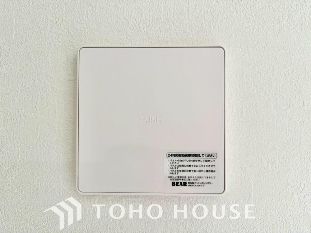 「24時間換気システム」従来の自然換気とは異なり、強制的に室内の空気の入れ替えを自動的に行う事を可能とした「換気設備」です。シックハウス症候群対策としても重要な設備です。