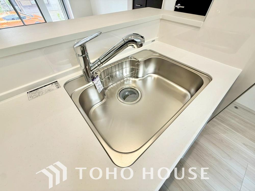 「浄水器一体型水栓」ワンタッチで浄水と原水と切り替えできる、見た目にもスマートな浄水器一体型の水栓は水道水に含まれる有害物質を除去してくれます。お茶を淹れたりお料理するにも活躍するアイテムです。