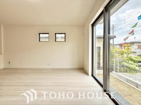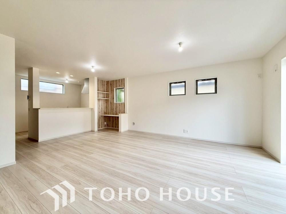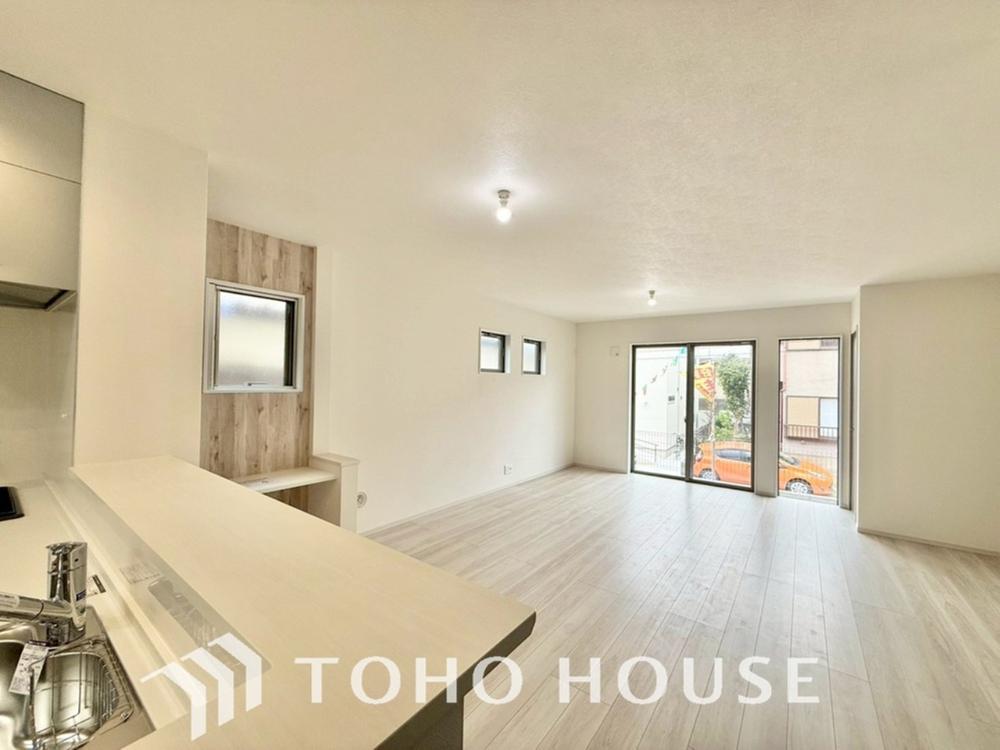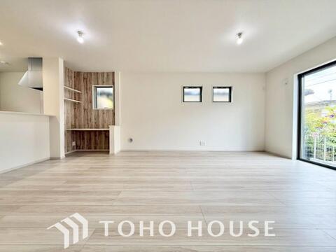 「楽しい我が家が一番」明るく開放的な空間が広がるリビングダイニング。室内には豊かな陽光が注ぎ込み、爽やかな住空間を演出。ホームパーティーでもゲストと一緒に料理を楽しみながら楽しい時間を過ごせそう。