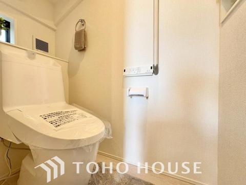 十分な広さと清潔感のあるカラーで纏まったおトイレ。時間に余裕とゆとりを持たせます。