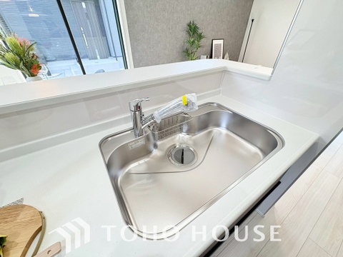 浄水器ボタンひとつで浄水と原水に切り替えられる浄水器一体型水洗を使用。