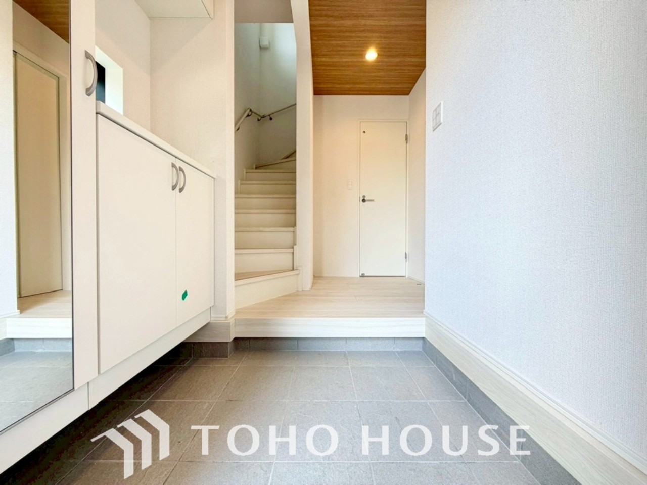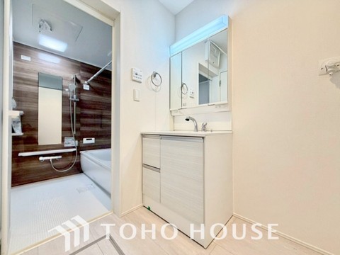 身だしなみのチェックがしやすい大きな鏡、下には収納がたっぷり。スッキリとした空間を演出いたします。