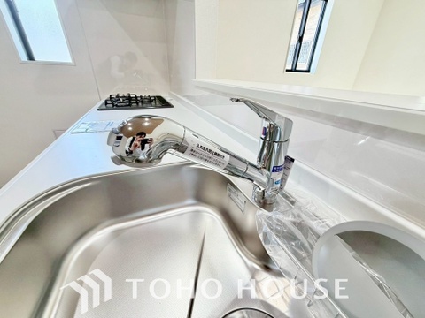 浄水器ボタンひとつで浄水と原水に切り替えられる浄水器一体型水洗を使用。