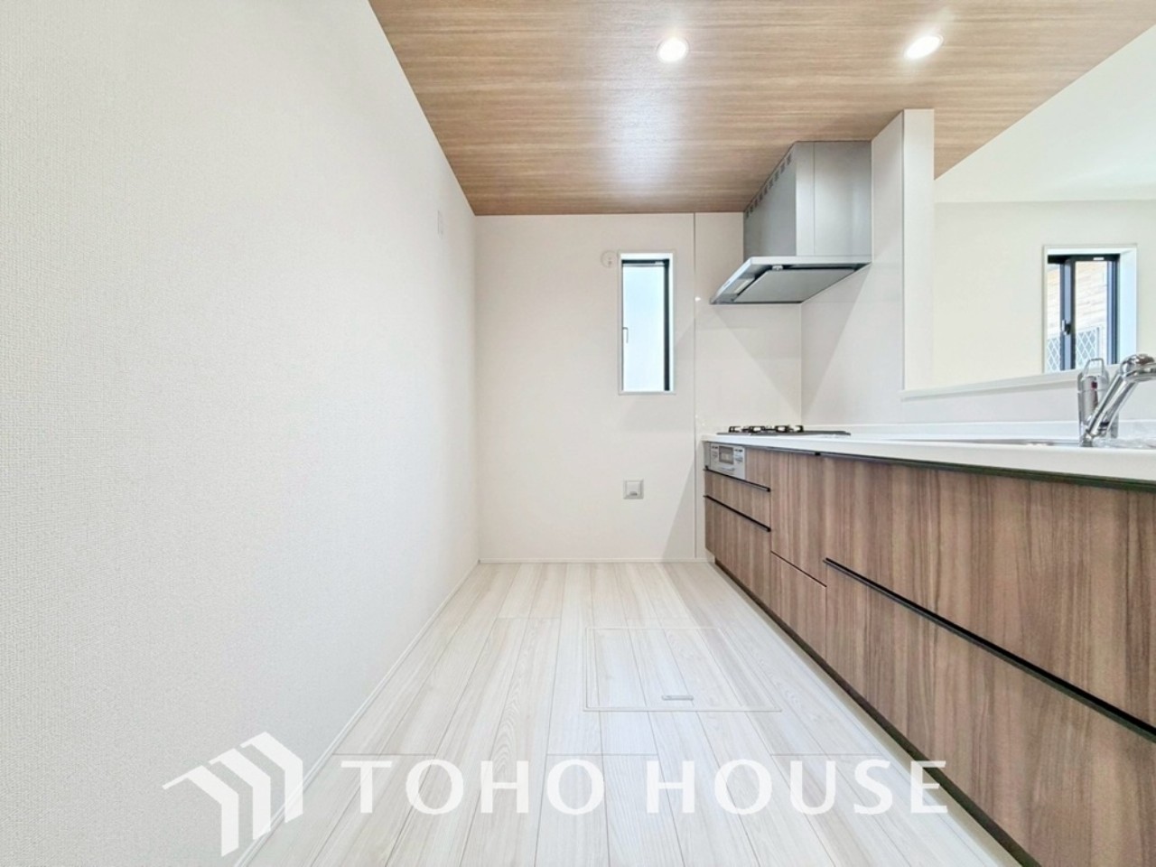 夫婦そろってキッチンに立っても調理がしやすく余裕の広さ。家事をしながら会話も弾みます。