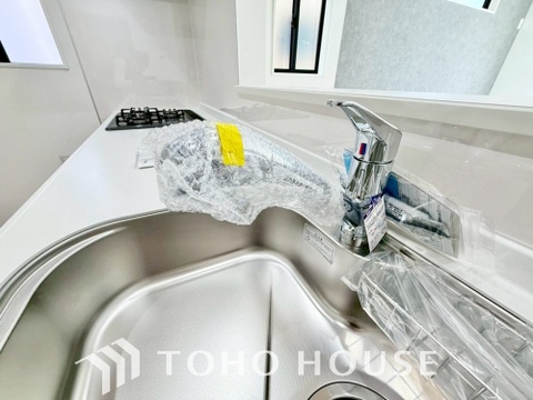 浄水器ボタンひとつで浄水と原水に切り替えられる浄水器一体型水洗を使用。