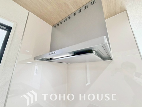 キッチンの換気扇はスタイリッシュなデザインで、日々のお手入れもラクラクな仕様となっております。