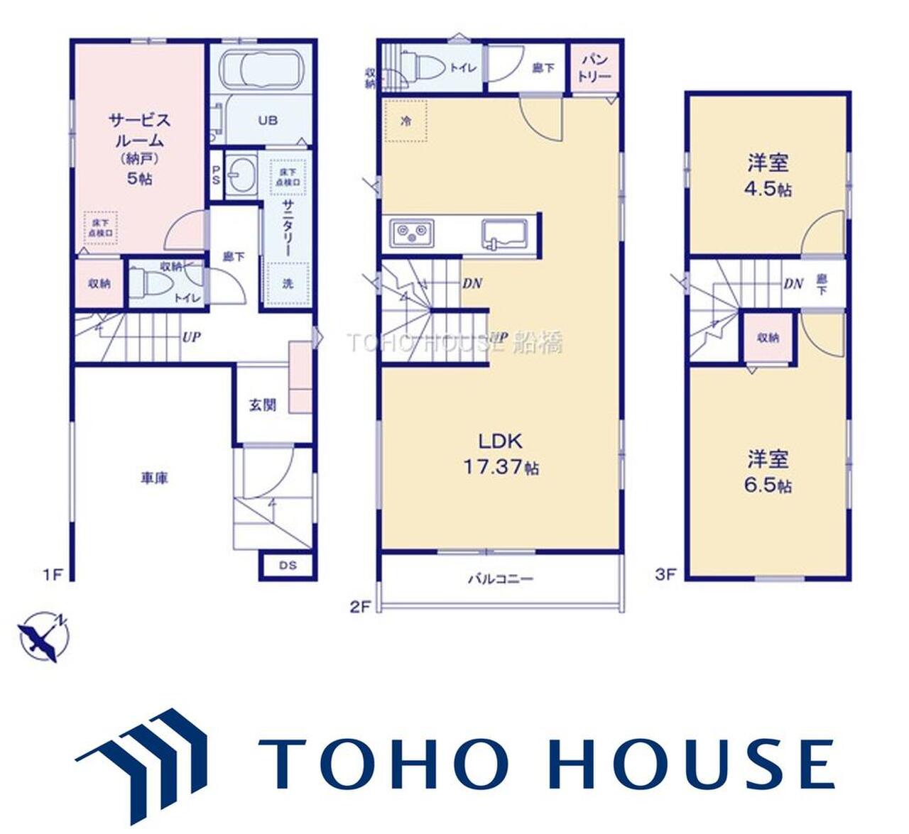 | 建物面積 | 97.33m²(実測) | 土地面積 | 63.69m²(実測) |