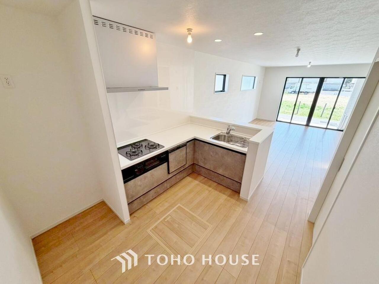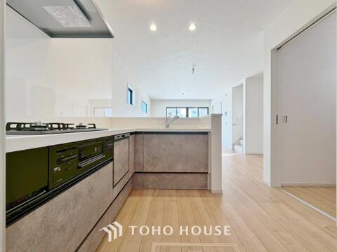 大型の冷蔵庫も配置できる広々としたキッチンスペースでお料理や家事をスムーズに進めることができます。