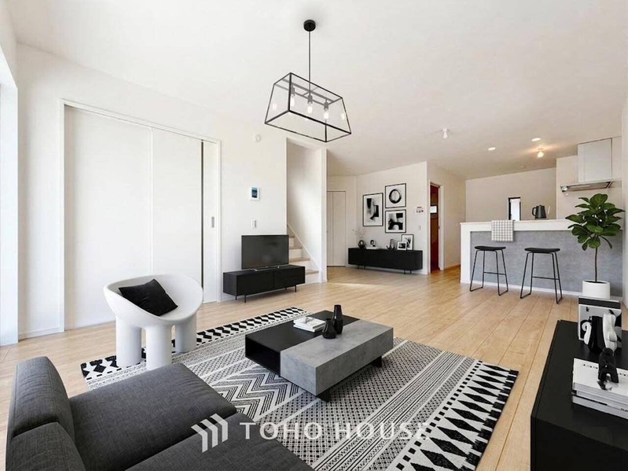 広々としたLDKは、家族が自然に集まりやすく、一緒に過ごす時間を楽しめる工夫が施されています。 ※家具・家電はCGです。