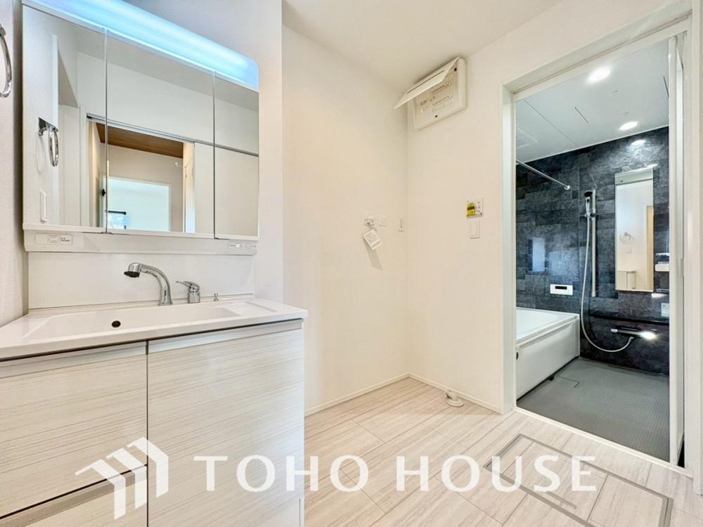 身だしなみのチェックがしやすい大きな鏡、下には収納がたっぷり。スッキリとした空間を演出いたします。