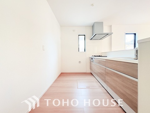キッチンはリビングで寛ぐ家族や小さなお子様を見守りながら料理が出来る「対面式の温もり設計」。