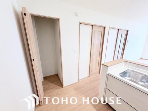 大型の冷蔵庫やレンジボードもしっかり置ける広々としたキッチンスペース。