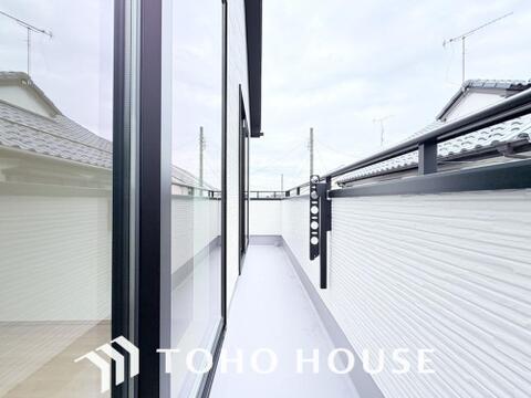 暖かい陽ざしが差込むバルコニー。晴れた日には、洗濯物が良く乾きます。風通しも良好です。