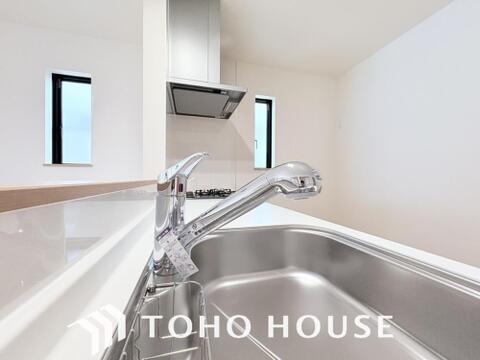 浄水器ボタンひとつで浄水と原水に切り替えられる浄水器一体型水栓を使用。