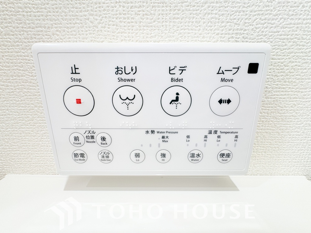 温水洗浄便座付。脱臭機能なども備え、快適な空間に。