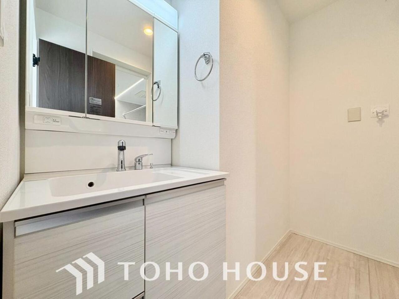 手で洗いたい大切な服など、広く使えると助かる洗面台は汚れの付きにくい形状と素材で造られております。