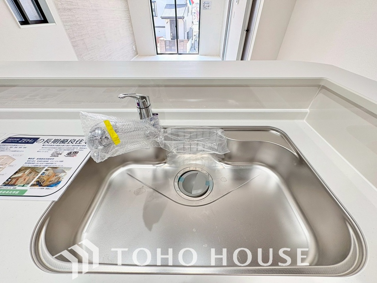 浄水器ボタンひとつで浄水と原水に切り替えられる浄水器一体型水洗を使用。