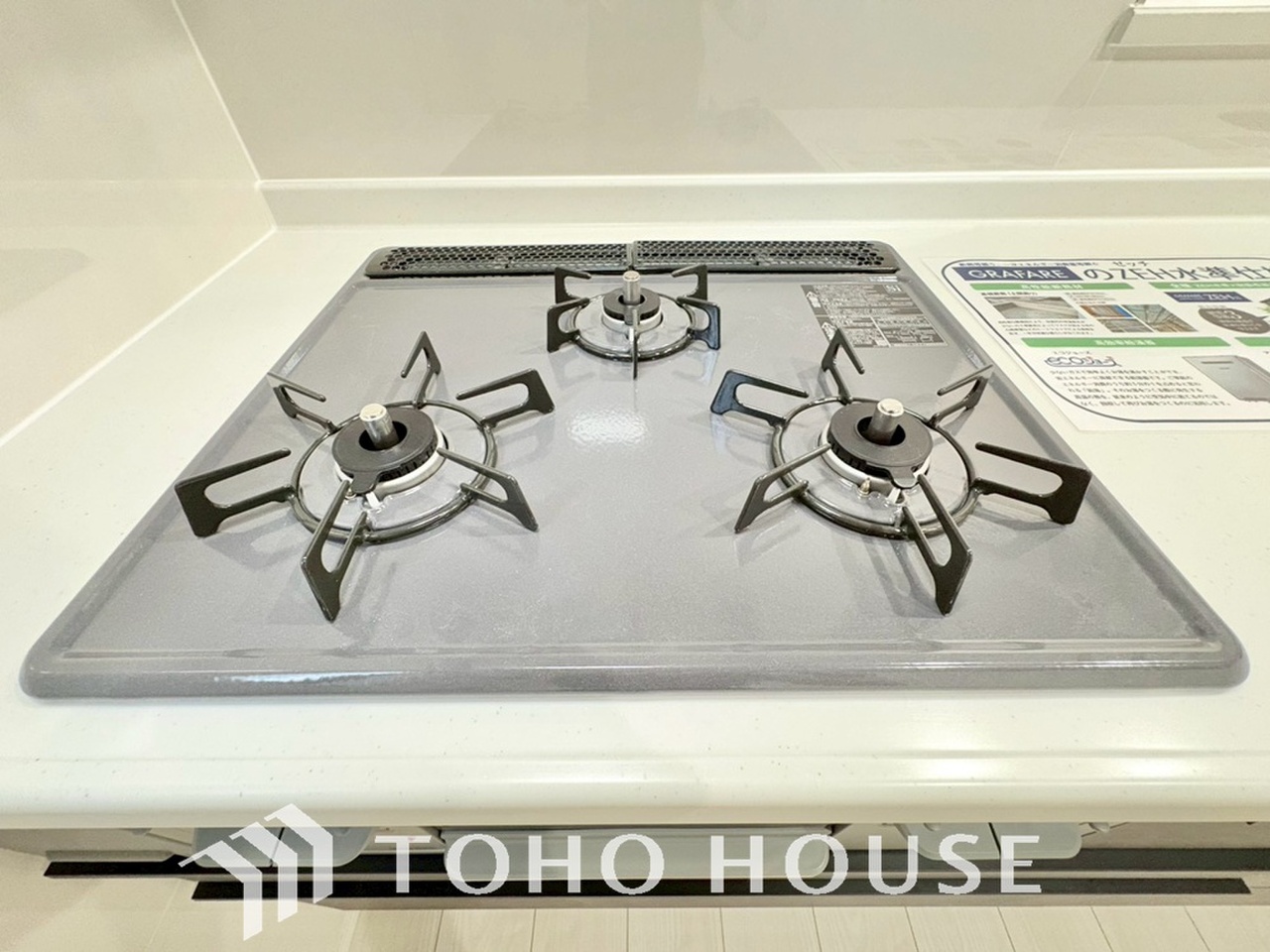 3口コンロは一度に複数のお料理を作ることができるメリットがあります。毎日のキッチンタイムを効率よく。