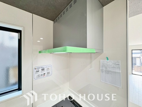 キッチンの換気扇はスタイリッシュなデザインで、日々のお手入れもラクラクな仕様となっております。