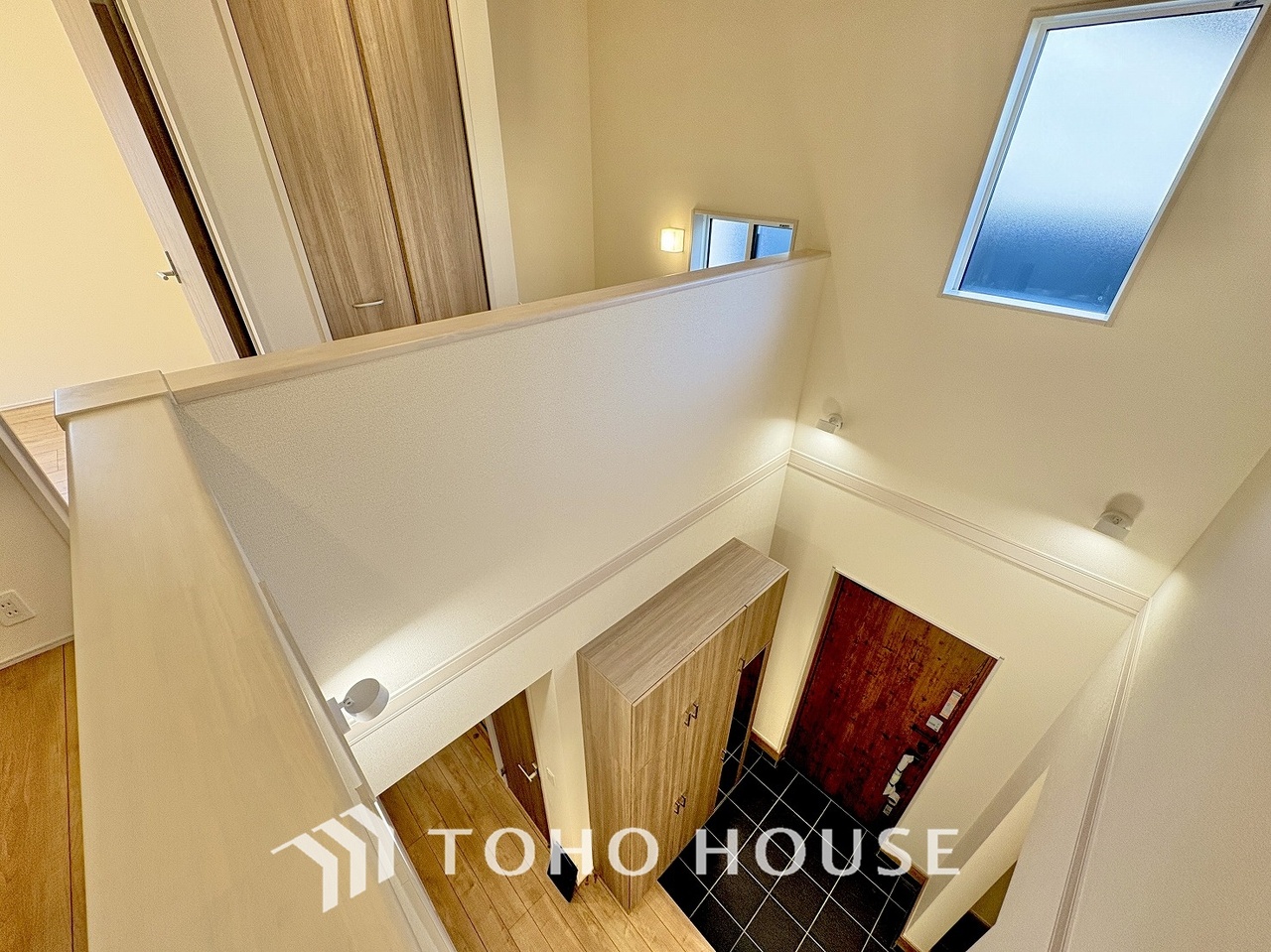 吹き抜けから降り注ぐ優しい光、開放感のある住空間をお届け致します。是非この開放感をご覧頂きたいです。