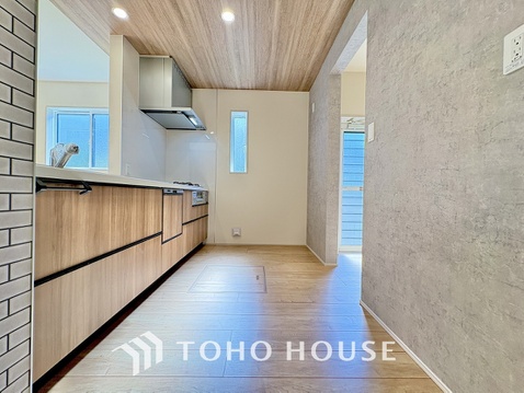 キッチンの収納は、デッドスペースになりやすい箇所を有効活用できる、スライド式収納を採用しました。