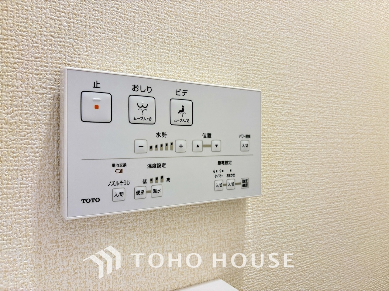 温水洗浄便座付。脱臭機能なども備え、快適な空間に。