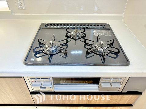 3口コンロは一度に複数のお料理を作ることができるメリットがあります。毎日のキッチンタイムを効率よく。