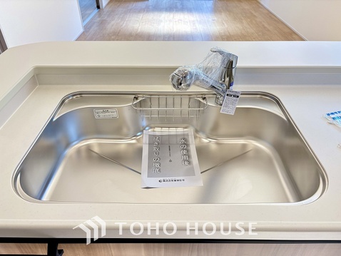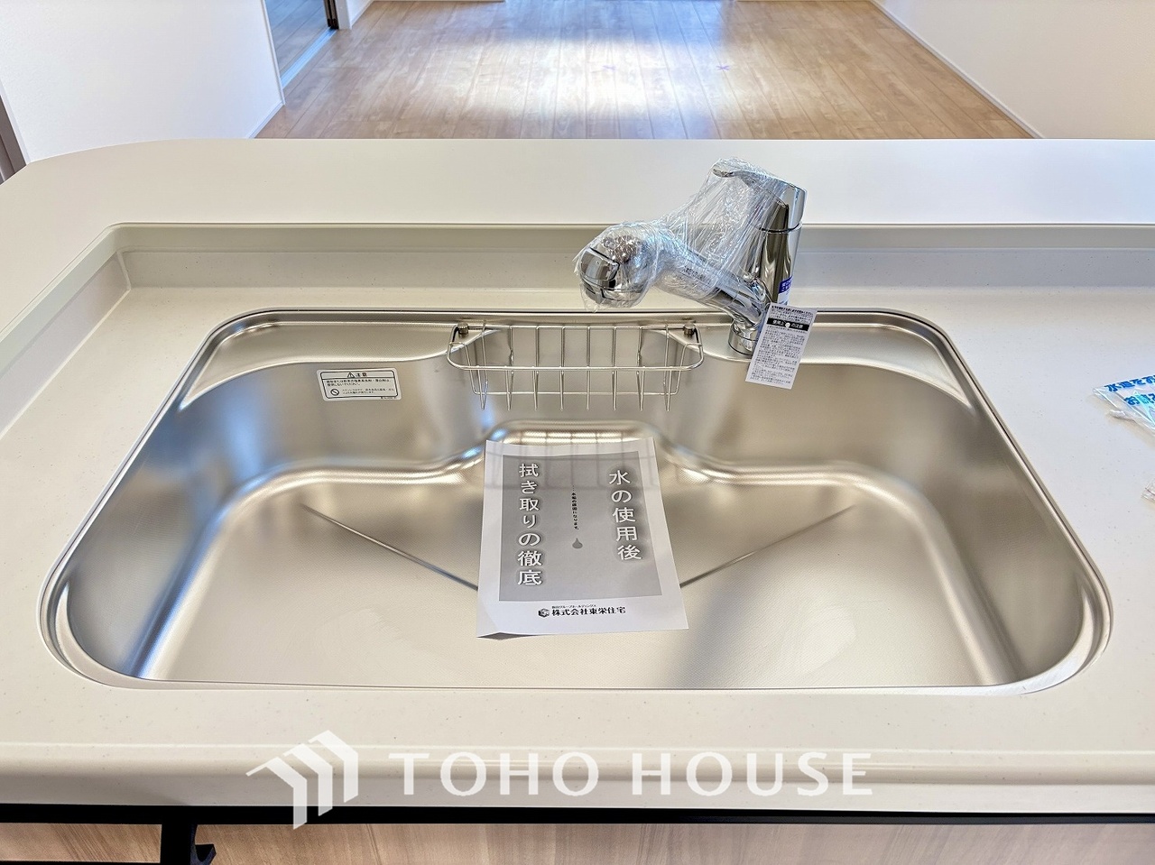 手で洗いたい大切な服など、広く使えると助かる洗面台は汚れの付きにくい形状と素材で造られております。