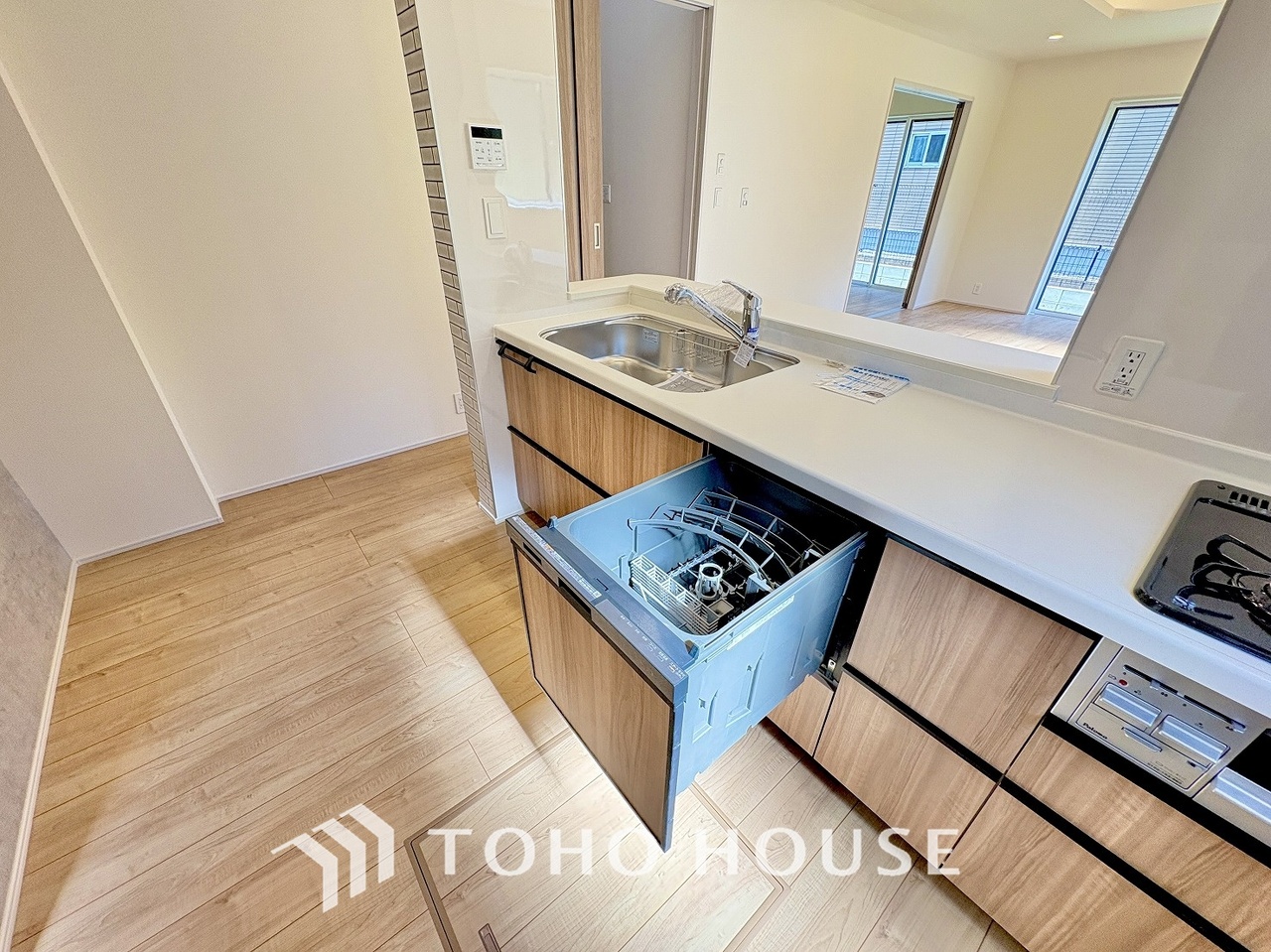 ビルトイン食洗機。高温のお湯や高圧水流を使うことにより汚れを効果的に落とすことができます。