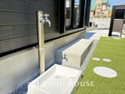 お庭には立水栓がございます。お車やお庭の手入れや、外回りのお掃除の際にあると、便利です。