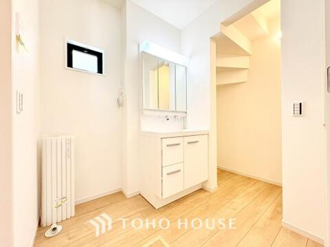 お家の中でも特にプライベートスペースとなる洗面所は、洗濯場所と浴室を同じ空間でまとめております。