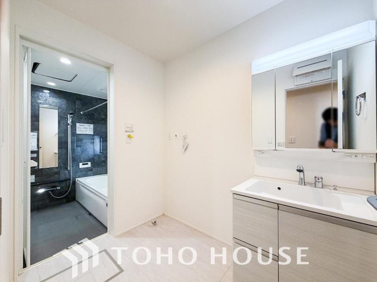 お家の中でも特にプライベートスペースとなる洗面所は、洗濯場所と浴室を同じ空間でまとめております。